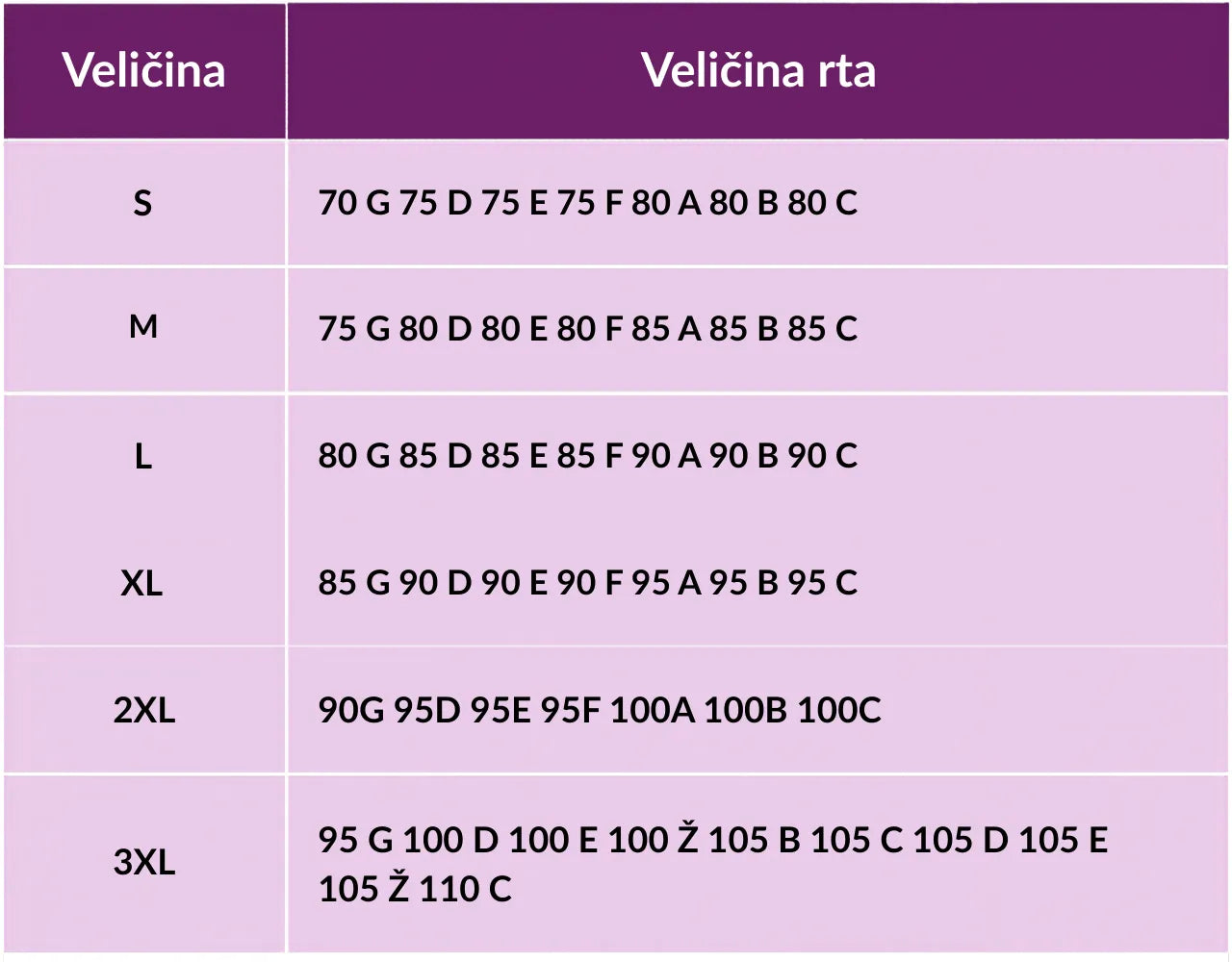 Ako ste između dvije veličine, odaberite veću veličinu. Grudnjaci su veličine prema standardima.
